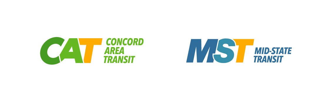 Logo and identity design for both CAT (Concord Area Transit) and its companion on-demand service MST (Mid-State Transit).