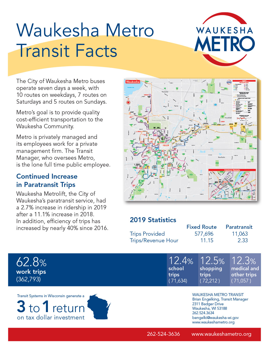 Logo and visual identity for public transit agency in Waukesha, Wisconsin.