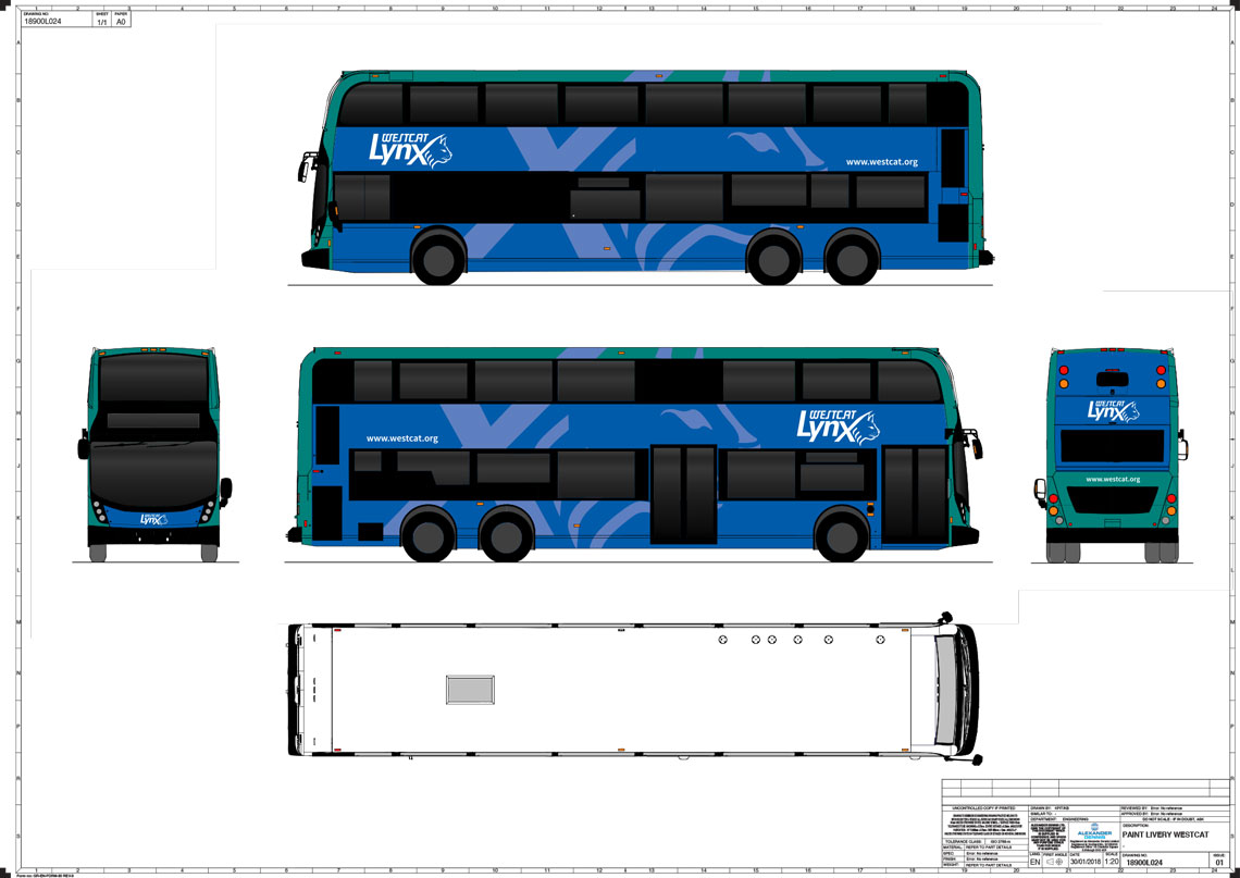 A bold but refined identity for the new double-decker buses providing Lynx Transbay express service between Western Contra Costa County and downtown San Francisco identifies and promotes this premium service to the community.